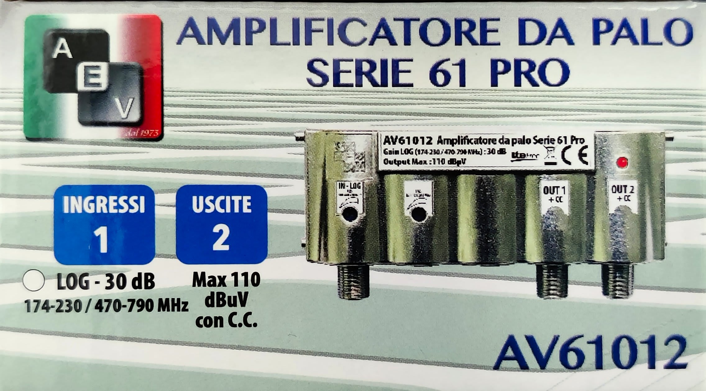 AEV - Amplificatore da palo 110dBuV - 1 ingr. reg. 30dB - 174-790mhZ log. 2 uscite