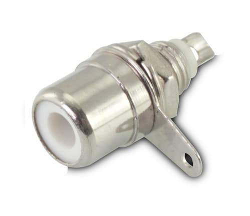 ** Caratteristiche Generali ** Genere: Presa Tipo Connettore: RCA Colore: Bianco Adatto per: Fam.17 ** Caratteristiche Meccaniche ** Materiale Corpo: Ottone nichelato Materiale Contatto: Ottone nichelato Tipo contatto: a saldare Montaggio connettore: pannello