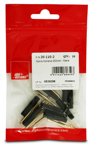 ALPHA ELETTRONICA SR - ALP20-110-2 SPINA BANANA COLORE NERO 2MM - 20-110-2