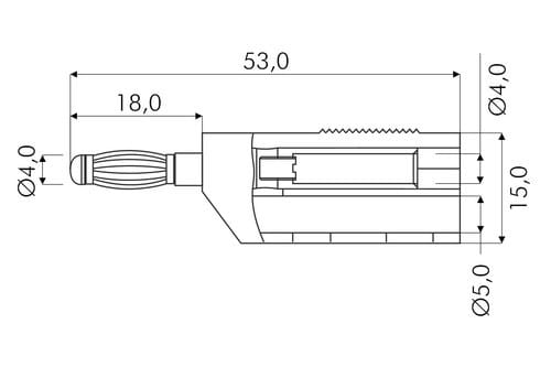 ** Caratteristiche Generali ** Genere: Spina Tipo Connettore: Banana Colore: Nero Orientamento: Dritto ** Caratteristiche Elettriche ** Corrente max: 32A Tensione max: 50V ** Caratteristiche Meccaniche ** Materiale Corpo: PE Materiale Contatto: Ottone nichelato Tipo contatto: a vite Montaggio connettore: volante Diametro cavo max: 5mm Diametro Pin: 4mm