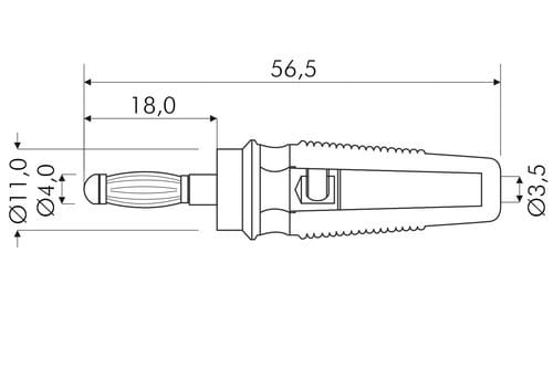 ** Caratteristiche Generali ** Genere: Spina Tipo Connettore: Banana Colore: Nero Orientamento: Dritto ** Caratteristiche Elettriche ** Corrente max: 24A Tensione max: 50V ** Caratteristiche Meccaniche ** Materiale Corpo: PVC Materiale Contatto: Ottonenichelato Tipo contatto: a vite Montaggio connettore: volante Diametro cavo max: 3.5mm Diametro Pin: 4mm