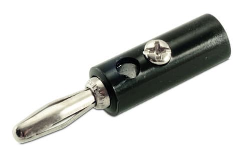 ** Caratteristiche Generali ** Genere: Spina Tipo Connettore: Banana Colore: Nero Orientamento: Dritto ** Caratteristiche Elettriche ** Tensione max: 50V ** Caratteristiche Meccaniche ** Materiale Corpo: Bachelite Materiale Contatto: Ottone nichelato Tipo contatto: a vite Montaggio connettore: volante Diametro Pin: 4mm