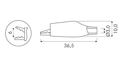 ** Caratteristiche Generali ** Tipo Connettore: Coccodrillo Colore: Rosso ** Caratteristiche Elettriche ** Corrente max: 5A Tensione max: 50V ** Caratteristiche Meccaniche ** Materiale Corpo: PVC Materiale Contatto: Acciaio nichelato Diametro cavo max:3mm