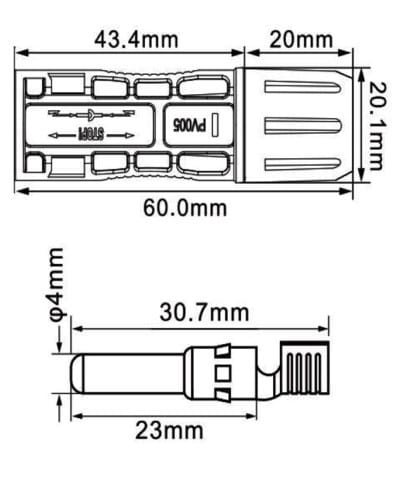 ** Caratteristiche Generali ** Genere: Presa Colore: Nero Genere Corpo: Maschio Genere Contatto: Maschio ** Caratteristiche Elettriche ** Corrente max: 30A Tensione max: 1500V Tensione Isolamento: 6 KV ** Caratteristiche Meccaniche ** Materiale Corpo: PPO Materiale Contatto: Rame stagnato Tipo contatto: a crimpare Terminazione: a crimpare Montaggio connettore: volante Sezione conduttori: 4-6mm² Diametro cavo min: 4.7mm Diametro cavo max: 6.4mm Grado di protezione: IP65 ** Caratteristiche Termiche ** Classe di infiammabilità: UL94V-0