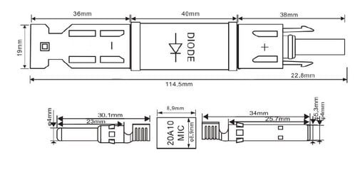 ** Caratteristiche Generali ** Colore: Nero ** Caratteristiche Elettriche ** Corrente max: 20A Tensione max: 1000V ** Caratteristiche Meccaniche ** Materiale Contatto: Rame stagnato Grado di protezione: IP68