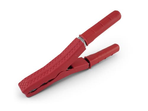 ** Caratteristiche Generali ** Tipo Connettore: Pinza Colore: Rosso ** Caratteristiche Elettriche ** Corrente max: 120A Tensione max: 50V ** Caratteristiche Meccaniche ** Materiale Corpo: PVC Materiale Contatto: Acciaio nichelato
