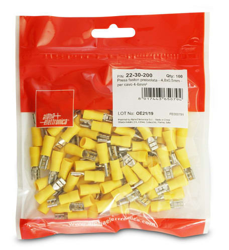ALPHA ELETTRONICA SR - ALP22-30-200 PRESA FASTON PREISOL.-4.8X0.5MM-PER C... - 22-30-200