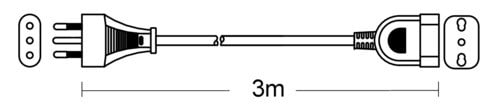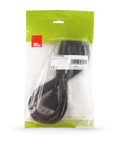 ** Caratteristiche ** Colore cavo: Nero Lunghezza Cavo: 3m Formazione cavo: 3 x 1mm² Tipo Cavo: Tondo Portata: 16A Tensione massima: 250V Nome tecnico: H05VV-F ** Connettore A ** Tipo Connettore A: Spina Italia 16A ** Connettore B ** Tipo Connettore B: Presa Bipasso Dritto