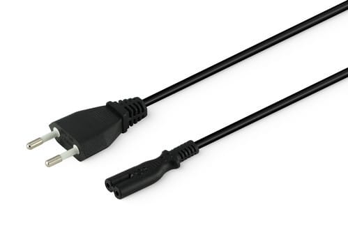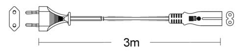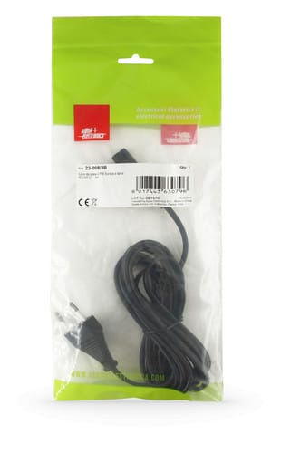 ** Caratteristiche ** Colore cavo: Nero Lunghezza Cavo: 3m Formazione cavo: 2 x 0.75mm² Tipo Cavo: Piatto Portata: 2.5A Tensione massima: 250V Nome tecnico: H03WH2-F ** Connettore A ** Tipo Connettore A: Spina 2 poli Europa Dritto ** Connettore B ** Tipo Connettore B: Spina IEC320 C7 Dritto