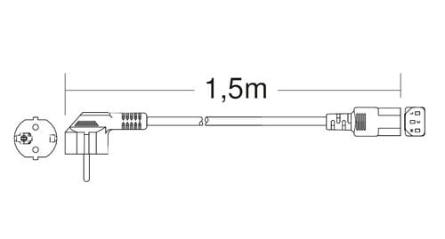 ** Caratteristiche ** Colore cavo: Nero Lunghezza Cavo: 1.5m Formazione cavo: 3 x 0.75mm² Tipo Cavo: Tondo Portata: 10A Tensione massima: 250V Nome tecnico: H05W-F ** Connettore A ** Tipo Connettore A: Spina Schuko 90° ** Connettore B ** Tipo Connettore B: Presa IEC320 C13 Dritto