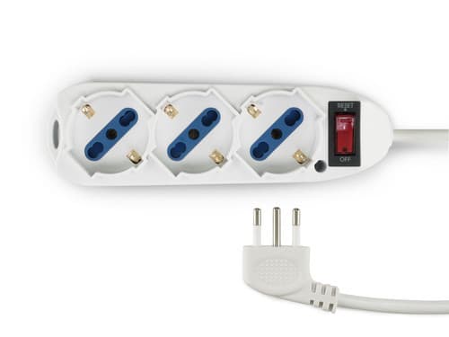 ** Caratteristiche Generali ** Colore: Bianco Tipo di prese: Universale Italia P40 Numero di prese Universali: 3 Numero di Prese Totali: 3 Tipo di spina: Italia - 10A 2P+T S11 - Salvaspazio ad angolo ** Caratteristiche Elettriche ** Tensione max: 250V Potenza max collegabile: 2500W ** Caratteristiche Meccaniche ** Materiale corpo: Termoplastico Materiale contatti: Lega di rame Cavo Alimentazione: H05VV-F 3G1 3x1,0mm² Lunghezza cavo complessiva: 1.5m Colore cavo: Bianco Accensione: Con interruttore luminoso Sistemi sicurezza: Alveoli protetti da contatti accidentali, Prese con protezione bimbi Protezioni: Messa a terra per ogni presa, Sovraccarico