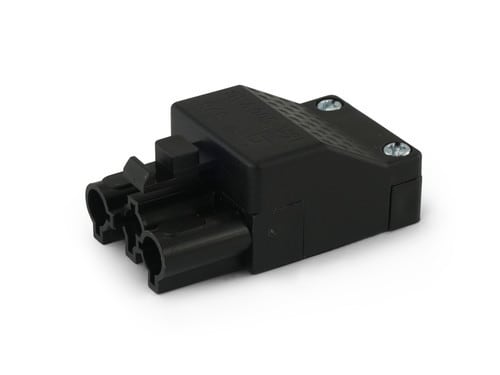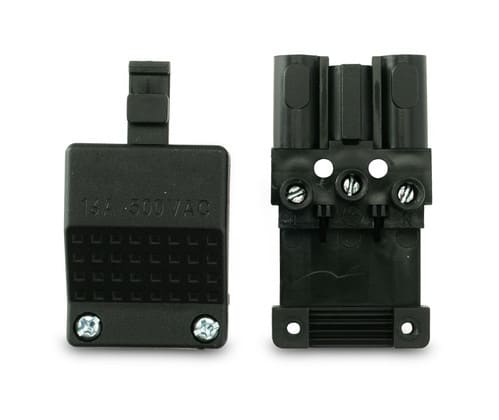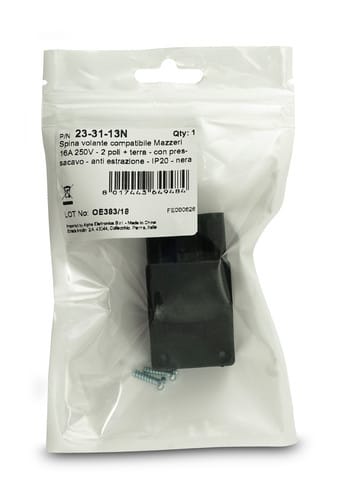 Connettore 3 poli anti estrazione 16A 500V tipo Mazzeri. Giunzione professionale con classe di infiammabilità UL 94 V-2. Verificare attentamente la compatibilità dell'involucro e dei contatti interni maschio e femmina. ** Caratteristiche Generali ** Genere: Spina Tipo Connettore: Mazzeri Colore: Nero Orientamento: Dritto Nr. Poli: 3 ** Caratteristiche Elettriche ** Corrente max: 16A Tensione max: 500V ** Caratteristiche Meccaniche ** Materiale Corpo: UL 94V-2 Terminazione: serraggio a vite Montaggio connettore: volante Sezione conduttori: 0.5-1.5mm² Grado di protezione: IP30 ** Caratteristiche Termiche ** Temperatura di lavoro: 50/125°C