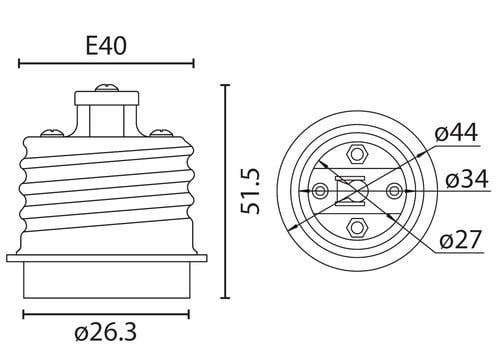 ** Caratteristiche Generali ** Attacco A: Maschio E40 Attacco B: Femmina E27 ** Caratteristiche Elettriche ** Tensione max: 240V Corrente max: 2A ** Caratteristiche Meccaniche ** Materiale corpo: Plastico ** Caratteristiche Termiche ** Temp. di funzionamento: 0 / 35°C
