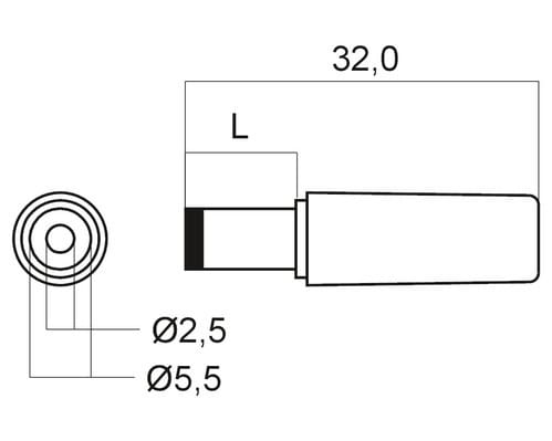 ** Caratteristiche Generali ** Genere: Spina Colore: Nero Orientamento: Dritto ** Caratteristiche Meccaniche ** Materiale Corpo: Bachelite Materiale Contatto: Ottone nichelato Tipo contatto: a saldare Montaggio connettore: volante Diametro Esterno: 5.5mm Diametro Interno: 2.5mm Lunghezza Contatto: 9.5mm