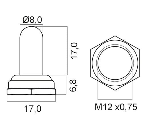 Cappuccio protettivo per interruttori a levetta medi ** Dati Tecnici ** Materiale ghiera: acciaio Finitura ghiera: esagonale o-Ring: nessuno ** Caratteristiche Generali ** Grado di protezione: IP65
