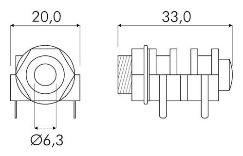 ** Caratteristiche Generali ** Genere: Presa Tipo Connettore: Jack Orientamento: Dritto Canali: Mono ** Caratteristiche Meccaniche ** Materiale Corpo: Nylon Materiale Contatto: Ottone nichelato Tipo contatto: a saldare Montaggio connettore: pannello Diametro Pin: 6.3mm