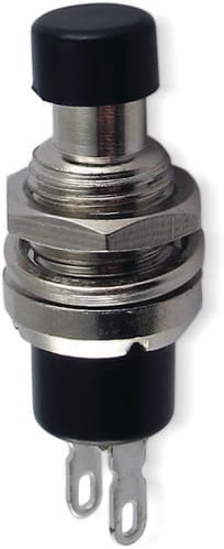 ** Caratteristiche Generali ** Attuatore: Pulsante Serigrafia: Nessuna Luminoso: no Colore: Nero Materiale attuatore: Plastica Tipi contatti: SPST Portata: 1A@250Vac, 3A@125Vac N. poli: 1 Stato dei contatti: (OFF)/ON - N.C. Tipo terminale: a saldare N. terminali: 2 Montaggio: Pannello con dado Foro fissaggio: ø7mm