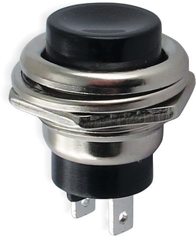** Caratteristiche Generali ** Attuatore: Pulsante Serigrafia: Nessuna Luminoso: no Colore: Nero Materiale attuatore: Plastica Tipi contatti: SPST Portata: 2A@250Vac, 4A@125Vac N. poli: 1 Stato dei contatti: OFF/(ON) - N.A. Tipo terminale: a saldare N. terminali: 2 Montaggio: Pannello con dado Foro fissaggio: ø16mm