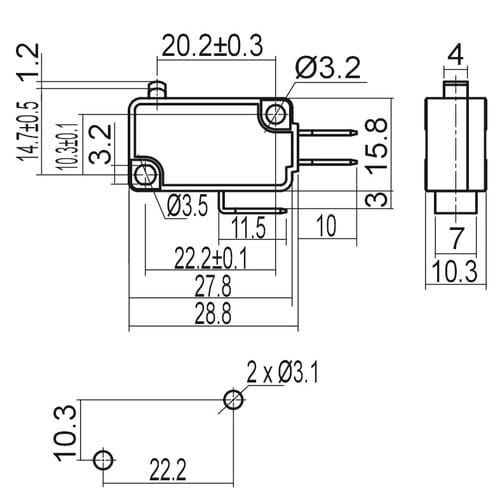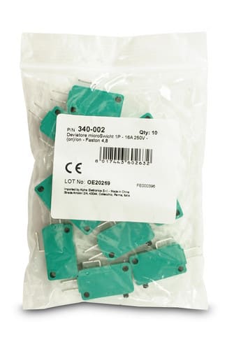 ** Caratteristiche Generali ** Attuatore: Microswitch Serigrafia: Nessuna Luminoso: no Materiale attuatore: Plastica Tipi contatti: SPDT Portata: 16A@250Vac, 10A@125Vac N. poli: 1 Stato dei contatti: (ON)/ON Tipo terminale: faston 4,8 N. terminali: 3