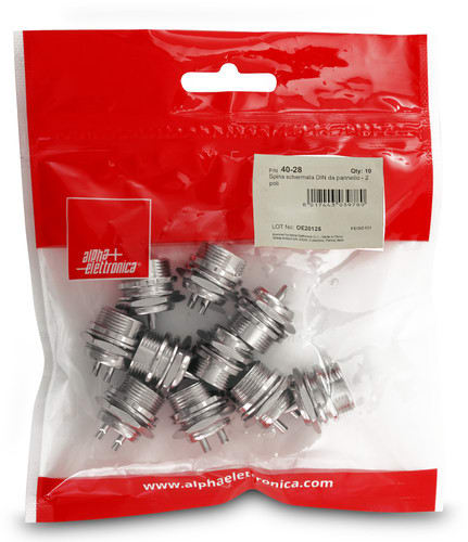 ** Caratteristiche Generali ** Genere: Spina Tipo Connettore: DIN Nr. Poli: 2 Adatto per: 40-01/40-05 ** Caratteristiche Meccaniche ** Materiale Corpo: Lega di zinco Materiale Isolamento: Resina fenolica Tipo contatto: a saldare Montaggio connettore: pannello