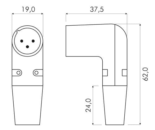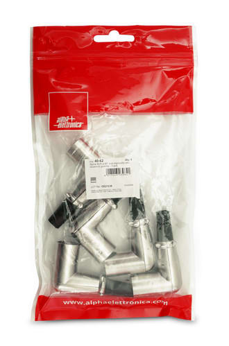 ** Caratteristiche Generali ** Genere: Spina Tipo Connettore: XLR Orientamento: 90° Nr. Poli: 3 Adatto per: 40-70/40-80 ** Caratteristiche Meccaniche ** Materiale Corpo: Zama Materiale Contatto: Ottone nichelato Tipo contatto: a saldare Montaggio connettore: volante Diametro cavo max: 5mm