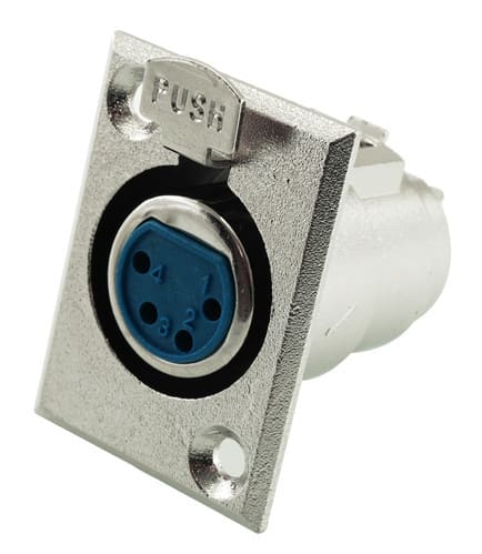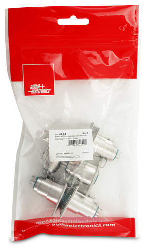 ** Caratteristiche Generali ** Genere: Presa Tipo Connettore: XLR Colore: Grigio Nr. Poli: 4 Adatto per: 40-64 ** Caratteristiche Meccaniche ** Materiale Corpo: Ottone nichelato Tipo contatto: a saldare Montaggio connettore: pannello