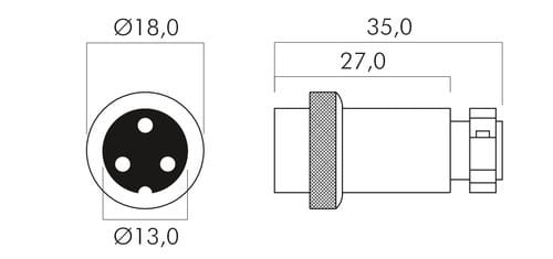 ** Caratteristiche Generali ** Genere: Presa Tipo Connettore: DIN Orientamento: Dritto Nr. Poli: 3 Adatto per: 40-30 ** Caratteristiche Meccaniche ** Materiale Corpo: Ottone nichelato Tipo contatto: a saldare Montaggio connettore: volante