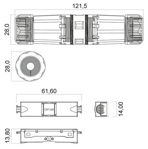 Accoppiatore RJ45 Cat.6A Schermata installabile senza bisogno di saldature né attrezzatura specifica. Grazie a questo prodotto puoi installare la tua rete nelle condizioni più difficili: l'accoppiatore è waterproof IP67! Ideale per ambienti industriali ein situazioni esterne. ** Caratteristiche Generali ** Colore: Nero Tipo Connettore A: RJ45 Cat.6A Genere A: Presa Tipo Connettore A: Presa RJ45 Cat.6A Tipo Connettore B: RJ45 Cat.6A Genere B: Presa Tipo Connettore B: Presa RJ45 Cat.6A ** Caratteristiche Elettriche ** Schermatura: si ** Caratteristiche Meccaniche ** Materiale Corpo: Nylon66 Adatto per cavo da ø4.5 - 7.5mm Supporto PoE 90W max