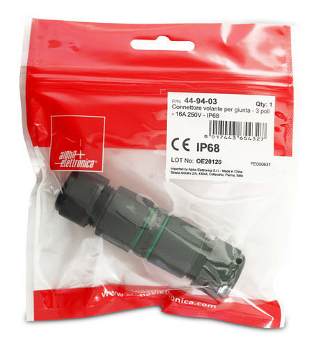 ALPHA ELETTRONICA SR - ALP44-94-03 CONNETTORE/GIUNTACAVO 3P IP68 CON LEVE - 44-94-03