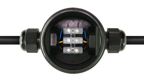 ** Caratteristiche Generali ** Genere: Morsetto Nr. Poli: 3 Numero totale vie: 2 vie ** Caratteristiche Elettriche ** Corrente max: 24A Tensione max: 450V ** Caratteristiche Meccaniche ** Terminazione: ad avvitare Sezione conduttori: 0.5-2.5mm² Diametro cavo min: 9mm Diametro cavo max: 12mm Grado di protezione: IP66 ** Caratteristiche Termiche ** Temperatura di lavoro: -20/40°C La scatola di giunzione è fornita con due differenti anelli in gomma per diversi diametri di cavo: 5-9mm e 9-12mm.