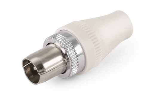 ** Caratteristiche Generali ** Genere: Spina Tipo Connettore: Coassiale TV Colore: Bianco Orientamento: Dritto Qualità: HQ ** Caratteristiche Elettriche ** Impedenza: 75ohm ** Caratteristiche Meccaniche ** Materiale Corpo: Plastico Tipo contatto: a vite Montaggio connettore: volante