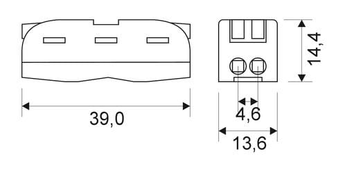** Caratteristiche Generali ** Genere: Morsetto Orientamento: Dritto Nr. Poli: 2 Sezione AWG: 28-12 ** Caratteristiche Elettriche ** Corrente max: 24A Tensione max: 250V ** Caratteristiche Meccaniche ** Materiale Corpo: Poliamide Materiale Contatto: Rame Tipo contatto: a pressione Terminazione: a pressione Montaggio connettore: volante Sezione conduttori: 0.08-4mm²