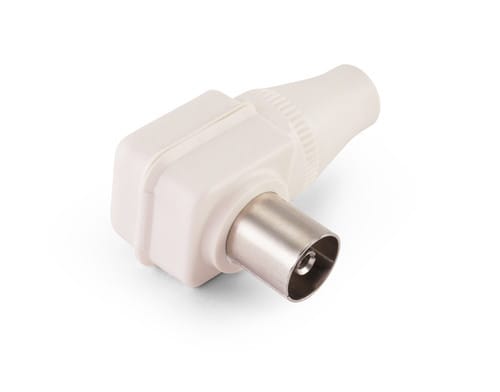 ** Caratteristiche Generali ** Genere: Presa Tipo Connettore: IEC Ø9,5mm Colore: Bianco Orientamento: 90° Qualità: HQ Adatto per cavo RG: 59 Adatto per: Cavo coassiale ** Caratteristiche Elettriche ** Impedenza: 75ohm ** Caratteristiche Meccaniche ** Materiale Corpo: Plastico Tipo contatto: a vite Montaggio connettore: volante Diametro cavo nom: 6mm