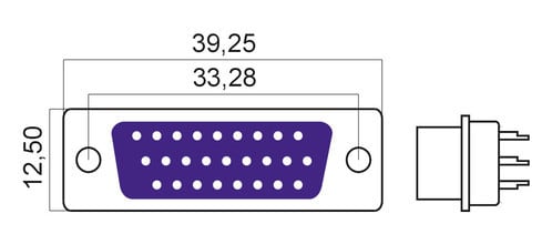** Caratteristiche Generali ** Genere: Presa Tipo Connettore: D Sub Nr. Poli: 26 ** Caratteristiche Elettriche ** Corrente max: 1A Tensione max: 50V ** Caratteristiche Meccaniche ** Materiale Corpo: Acciaio Materiale Isolamento: Poliestere Materiale Contatto: Ottone Tipo contatto: a saldare Montaggio connettore: volante