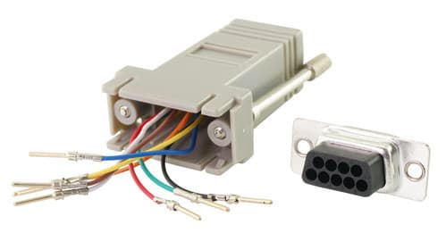 ** Caratteristiche Generali ** Genere: Adattatore Tipo Connettore A: D Sub Genere A: Maschio Tipo Connettore A: Maschio D Sub 9 poli Tipo Connettore B: Modulare 8 contatti Genere B: Presa Tipo Connettore B: Presa Modulare 8 contatti ** Caratteristiche Meccaniche ** Materiale Corpo: PVC Materiale Isolamento: PVC Materiale Contatto: Ottone