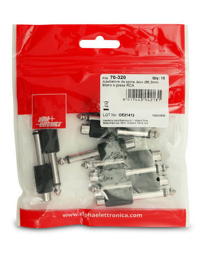 ** Caratteristiche Generali ** Genere: Adattatore Orientamento: Dritto Tipo Connettore A: Jack Genere A: Spina Tipo Connettore A: Spina Jack ø6.3mm Mono Tipo Connettore B: RCA Genere B: Presa Tipo Connettore B: Presa RCA ** Caratteristiche Elettriche ** Schermatura: si ** Caratteristiche Meccaniche ** Materiale Corpo: PVC Materiale Contatto: Ottone nichelato Lunghezza Cavetto: 2cm