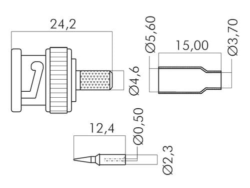 ** Caratteristiche Generali ** Genere: Spina Tipo Connettore: BNC Orientamento: Dritto Qualità: HQ ** Caratteristiche Elettriche ** Impedenza: 75ohm ** Caratteristiche Meccaniche ** Materiale Corpo: Ottone nichelato Tipo contatto: a saldare Terminazione: a crimpare Montaggio connettore: volante Diametro cavo nom: 3.6mm Si consiglia si saldare il pin centrale