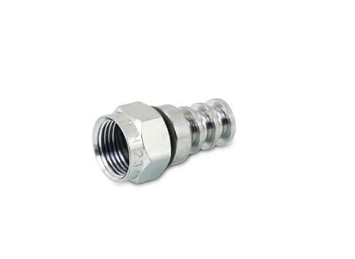 ** Caratteristiche Generali ** Genere: Spina Tipo Connettore: F Orientamento: Dritto Adatto per cavo RG: RG6 ** Caratteristiche Meccaniche ** Materiale Corpo: Ottone nichelato Terminazione: a crimpare Montaggio connettore: volante Diametro cavo nom: 6.8mm Dim. A: 5.1mm Dim. B: 8mm n. o-ring: 0