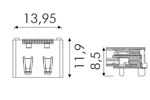 ** Caratteristiche Generali ** Genere: Presa Tipo Connettore: HDMI® ** Caratteristiche Meccaniche ** Materiale Corpo: Metallo Materiale Isolamento: Termoplastico Montaggio connettore: PCB