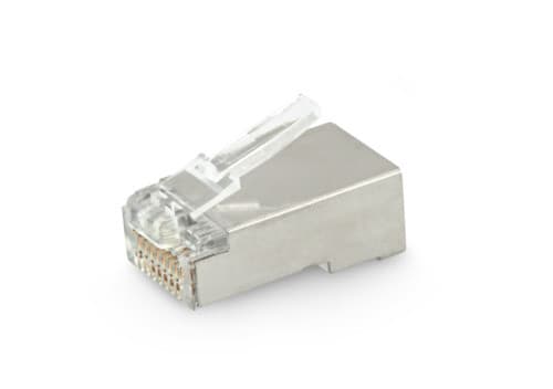 ** Caratteristiche Generali ** Genere: Spina Categoria: CAT.6 Colore: Trasparente Nr. Poli: 8 Configurazione Poli: 8P8C Adatto per tipo conduttore: Trefolo + Rigido Sezione AWG: AWG24-26 Tipo Clip: Standard ** Caratteristiche Elettriche ** Schermatura: si ** Caratteristiche Meccaniche ** Materiale Corpo: PC UL 94V-2 Materiale Contatto: Bronzo fosforoso Placcatura contatti: Contatti dorati Tipo contatto: 3-prong Diametro conduttori max: 1mm Diametro cavo max: 6mm Inserti: 0 Placcatura: 50µm Formato Corpo: Standard Dim. A: 11.68mm Dim. B: 21.48mm ** Caratteristiche Termiche ** Classe di infiammabilità: UL94V-2