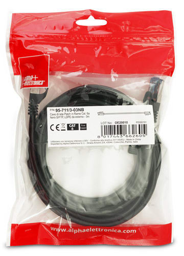 ALPHA ELETTRONICA SR - ALP95-711/3-03NB CAVO P. CAT6A 3M S/FTP PELDPE NERO CU - 95-711/3-03NB