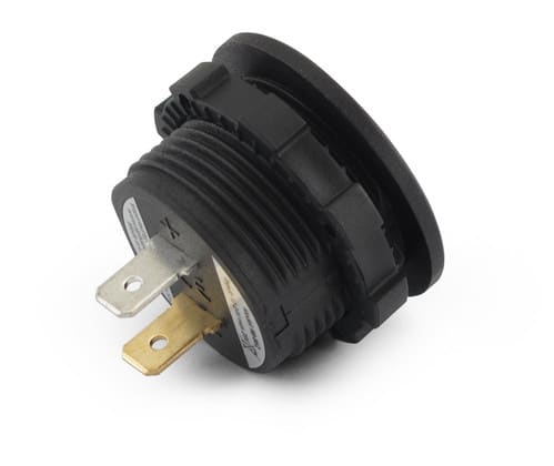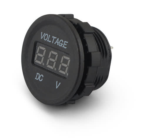 Voltmetro digitale 12-28V Display a LED di colore Rosso Fissabile a pannello ** Caratteristiche Generali ** Grado Protezione: IP54 ** Caratteristiche Elettriche ** Tensione d'ingresso: 12‑24Vdc ** Caratteristiche Meccaniche ** Dimensioni (LxWxH): 36.7 x 36.7 x 33.6mm Materiale contenitore: Plastico Colore: Nero Connessioni: faston 6,3 ** Caratteristiche Termiche ** Temperatura di lavoro: -10/40°C