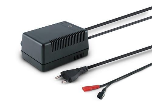 ** Caratteristiche ** Ricarica tampone Adatto per batterie 24V, capacità compresa da 1,3Ah a 4,5Ah ** Caratteristiche Generali ** Costruzione: desktop Tipo regolazione: CC + CV Classe isolamento: II Adatto per batterie: 24V Grado Protezione: IP20 ** Caratteristiche Elettriche ** Tensione d'ingresso: 230Vac Frequenza: 50Hz Tensione d'uscita: 27.6V Corrente d'uscita: 400mA Tolleranza tensione d'uscita: ±5% Protezioni: sovratemperatura, corto circuito, inversione ** Caratteristiche Meccaniche ** Dimensioni (LxWxH): 107 x 68.4 x 53.4mm Raffreddamento: passivo Materiale contenitore: Plastico Colore: Nero Connessioni: connettore fisso Connettori: Faston 6,3mm ** Caratteristiche Termiche ** Temperatura di lavoro: 0/30°C ** Modalità di carica ** Tipo di carica: corrente costante Modalità di carica: a singola fase - tampone Indicazione di carica: Led giallo acceso Indicazione di fine carica: Led giallo spento Batteria non connessa o Stand-by: Led spento Connettore d'uscita: Vedi dettaglio