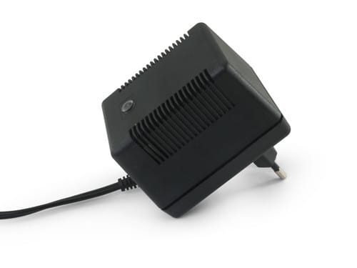 ** Caratteristiche ** Ricarica tampone Adatto per batterie 12V, capacità compresa da 1,3Ah a 7,2Ah ** Caratteristiche Generali ** Costruzione: plugin Tipo regolazione: CC + CV Classe isolamento: II Adatto per batterie: 12V Grado Protezione: IP20 ** Caratteristiche Elettriche ** Tensione d'ingresso: 230Vac Frequenza: 50Hz Tensione d'uscita: 13.8V Corrente d'uscita: 600mA Tolleranza tensione d'uscita: ±5% Protezioni: sovratemperatura, corto circuito, inversione ** Caratteristiche Meccaniche ** Dimensioni (LxWxH): 77 x 58 x 53.6mm Raffreddamento: passivo Materiale contenitore: Plastico Colore: Nero Connessioni: connettore fisso Connettori: 5,5x2,1mm ** Caratteristiche Termiche ** Temperatura di lavoro: 0/30°C ** Modalità di carica ** Tipo di carica: Ciclica - Tampone Indicazione di carica: Led giallo acceso Indicazione di fine carica: Led giallo spento Batteria non connessa o Stand-by: Led spento Connettore d'uscita: Vedi dettaglio