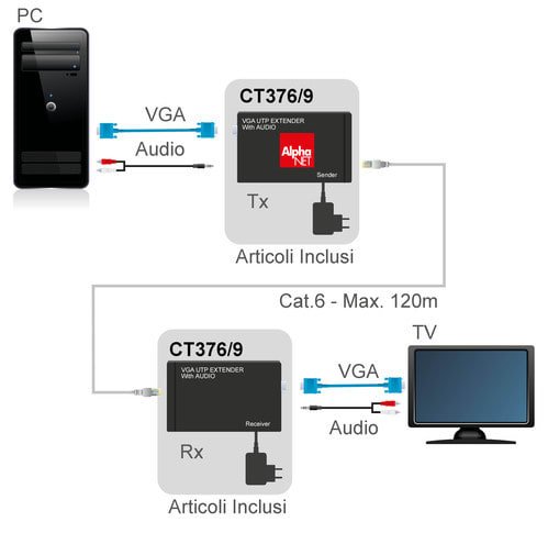 ALPHA ELETTRONICA SR - ALPCT376/9R Receiver for CT376/9 extender VGA - 1920x1080 - Audio - Over IP (1:N) - cavo Cat.5e/6 - 120 m - CT376/9R