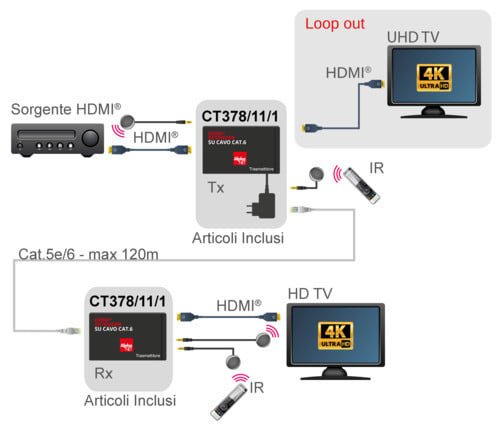 ALPHA ELETTRONICA SR - ALPCT378/11/1 EXTENDER HDMI HDBASET 2.0 4K60HZ 120M IR - CT378/11/1