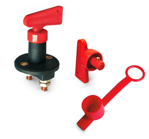 ** Descrizione ** Interruttore per disconnettere batterie 12/24V da carichi in corrente continua. Chiave rimovibile Dadi M10 in rame Dimensioni: ø59mm, h 71mm Portata: 200A @12V carico continuo, 500A picco per 5 secondi. 100A @24V carico continuo, 300A picco per 5 secondi. ** Caratteristiche Generali ** Attuatore: Chiave Materiale attuatore: Plastica Stato dei contatti: ON/OFF Montaggio: a pannello Tensione massima: 24V Corrente massima: 200A