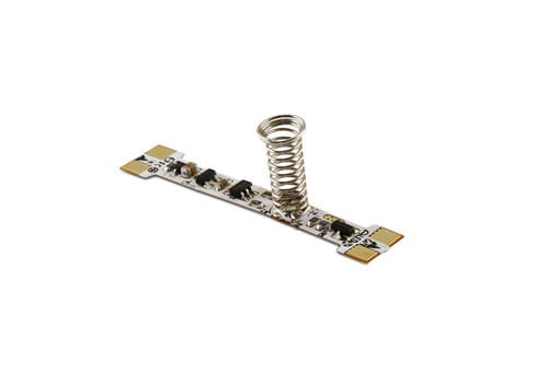 Il mini dimmer touch per nastri monocolore permette di accendere e spegnere la striscia led collegata in uscita semplicemente al tocco del dito sopra al sensore. Funzioni ON/OFF: premere velocemente per accendere/spegnere. DIMMER: tenere premuto per aumentare/diminuire l’intensità. ** Caratteristiche Generali ** Funzione: Controller Adatto per: Monocolore Metodo di controllo: Led-touch ** Caratteristiche Elettriche ** Tensione d'ingresso: 12-24V Tensione d'uscita: come ingresso Corrente/Ch: 3.5A n. canali: 1 Potenza nominale (12V): 42W Potenza nominale (24V): 84W ** Caratteristiche Meccaniche ** Lunghezza: 40mm Larghezza: 10mm Altezza: 10mm Grado di protezione: IP20 ** Caratteristiche Termiche ** Temp. di funzionamento: -10 / 45°C ** Specifiche ** Tipo PCB: Flessibile Materiale: Rame Indicatore Led: sì di colore blu Gamma luminosità dimmerabile: 5%~100% Frequenza PWM: 20KHz Altezza: 5~10mm (molla a compressione) Utilizzo: Interno