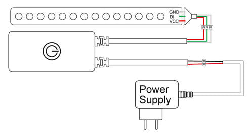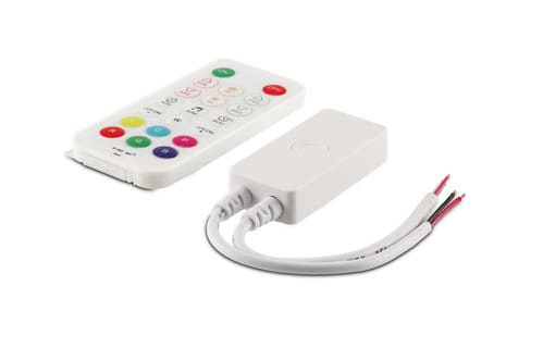 Controller per strisce led RGBW digitali. Il protocollo di comunicazione permette di controllare ogni singolo pixel della striscia JO35307121DRGBW e realizzare effetti di luce dinamici. Il controller comanda i colori e gli effetti tramite protocollo di comunicazione digitale (bus dati). Non è definibile quindi il numero di canali come solitamente succede con le strisce led RGBW. Il controller può essere quindi utilizzato solo con la striscia led RGBW digitale indicata da Alpha Elettronica. Non è supportato l'utilizzo con altre strisce led. ** Caratteristiche Generali ** Funzione: Controller Adatto per: RGBW Metodo di controllo: RF ** Caratteristiche Elettriche ** Tipo regolazione: Tensione costante (CV) Tensione d'ingresso: 5-24V Tensione d'uscita: come ingresso Tipo di uscita: fili liberi Corrente/Ch: 4A Potenza nominale (12V): 48W Potenza nominale (24V): 96W ** Caratteristiche Meccaniche ** Lunghezza: 55mm Larghezza: 26mm Altezza: 12mm Grado di protezione: IP20 Materiale corpo: Plastica Colore corpo: Bianco ** Caratteristiche Termiche ** Temp. di funzionamento: 0 / 40°C Connessioni (Pin-out) Rosso: 12V Verde: DAT Bianco: GND Pixel: 450 Per uso Plug-in utilizzare l'adattatore da presa DC a mosetto (NON incluso in confezione) e un alimentatore(non incluso) 5-24Vdc con connettore 5.5x2.1mm, positivo centrale, e con potenza nominale maggiore rispetto al carico led da alimentare (almeno 30%). Per funzionamento App BanlanX: - i dispositivi Apple richiedono iOS 10.0 o versioni successive; - i dispositivi Android richiedono Android 4.4 o versioni successive;