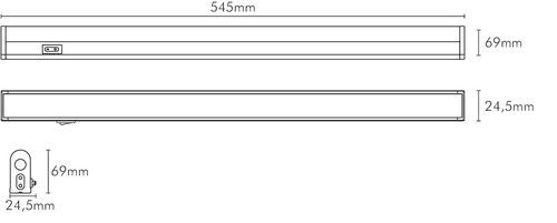 Descrizione Barra led basso profilo prolungabile con interruttore. Ruotabile di 70°. ** Caratteristiche Generali ** Tempo di vita L70B50: 30000h Numero cicli di accensione: 15000 cicli Tipo di led: smd 2835 Numero Led: 56 Pezzi in cascata: 18 Rischio fotobiologico: Esente ** Caratteristiche di Illuminazione ** Colore: Bianco naturale Flusso: 810lm CRI: 80 Angolo di emissione: 115° ** Caratteristiche Elettriche ** Potenza: 12W Fattore di potenza PF: 0.7 Tens. funzionamento AC: 230Vac (100‑240Vac) Tolleranza d'ingresso: -10% +6% Frequenza: 50-60Hz Dimmerabile: no Classe isolamento: II Alimentatore: Integrato ** Caratteristiche Sorgente Luminosa ** Temp. Colore: 4000K ** Caratteristiche Meccaniche ** Lunghezza: 545mm Larghezza: 24.5mm Altezza: 69mm Fissaggio: Staffe Incluse Montaggio: A parete, A soffitto Grado di protezione: IP20 Materiale corpo: Alluminio anodizzato Colore corpo: Grigio Diffusore: Policarbonato opaco Connessioni: Connettori e cavetti inclusi Tipo Controllo: Interruttore integrato Orientabile: si ** Caratteristiche Termiche ** Temp. di funzionamento: -10 / 40°C Attenzione Ogni interruttore controlla solo la relativa barra anche nel caso di collegamento in cascata. Il primo interruttore ** non ** controlla le barre successive.